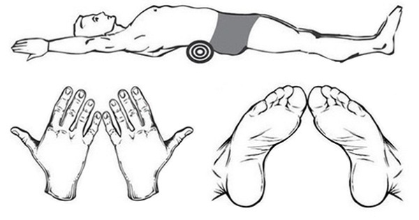 Duỗi cánh tay của bạn lên cao đầu, úp lòng bàn tay xuống, với ngón út chạm vào nhau. Hãy chắc chắn rằng các ngón chân và ngón tay út của bạn đã chạm vào lẫn nhau.